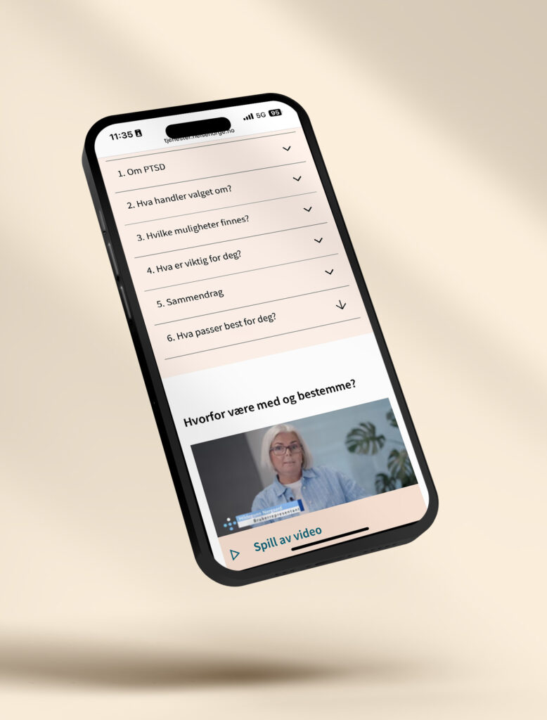 – I tillegg til å være et hjelpemiddel for pasienter gir samvalgsverktøyet også henviser og behandler et verktøy for enkelt å dele informasjon med pasientene om PTSD og behandlingsformene som finnes, sier Gjersheim.